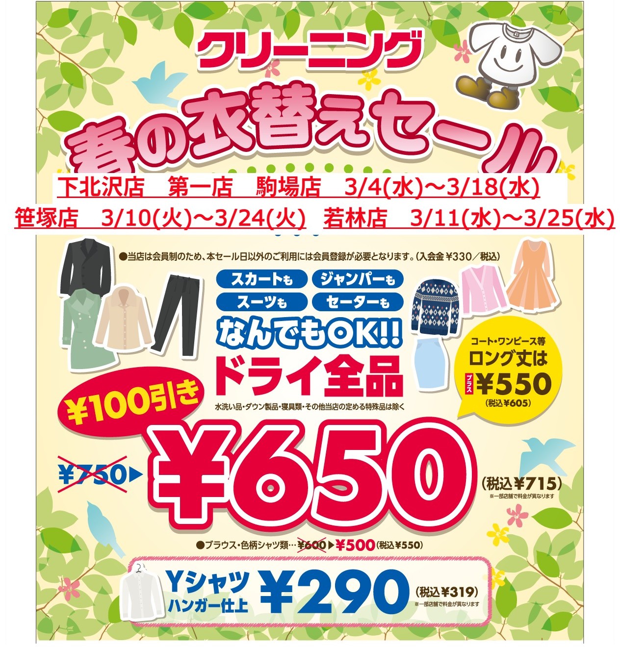 ・若林店・下北沢店・池ノ上第一店・駒場店 ・3/20(金)祝日休み |
